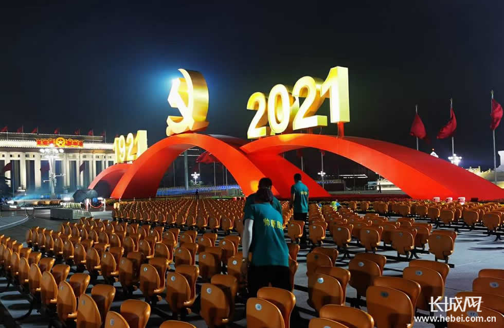 河北康迪视听设备有限公司座椅员工在天安门广场安装检查座椅。朱峙委供图