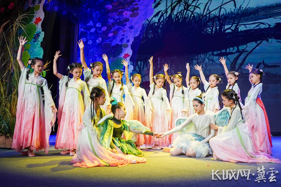 舞台上,来自容西片区的46名小演员以纯真的表演、清亮的歌声和灵动的舞姿,将淀泊风光的历史变迁与生态保护的深刻主题娓娓道来。剧中既有对环境保护的深刻思考,也融入了对未来之城的美好畅想,让童真与理想在舞台上碰撞出璀璨的火花。