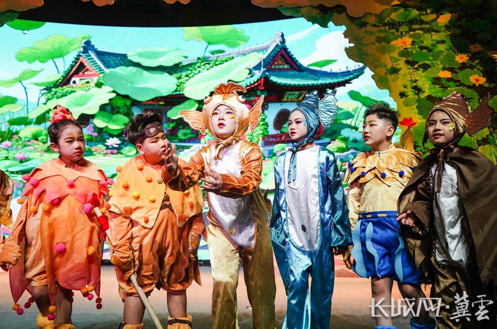 该舞台剧总导演黄尧介绍了剧目的创作理念与制作历程:《白洋淀的歌声》以“用童真视角讲好生态故事”为核心,深度融合雄安独特的水乡风情与红色文化,创新采用拟人化手法,在创作过程中,全体小演员们互相学习,共同成长,都有很大进步。