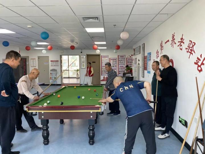 容西第一养老驿站,老年人正在打台球(2024年4月23日摄)。新华社记者王美祺 摄
