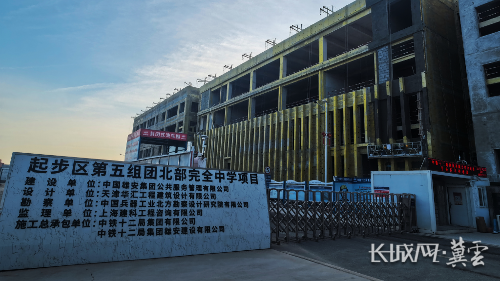 雄安新区起步区第五组团北部完全中学项目建设现场。敬祺烨供图