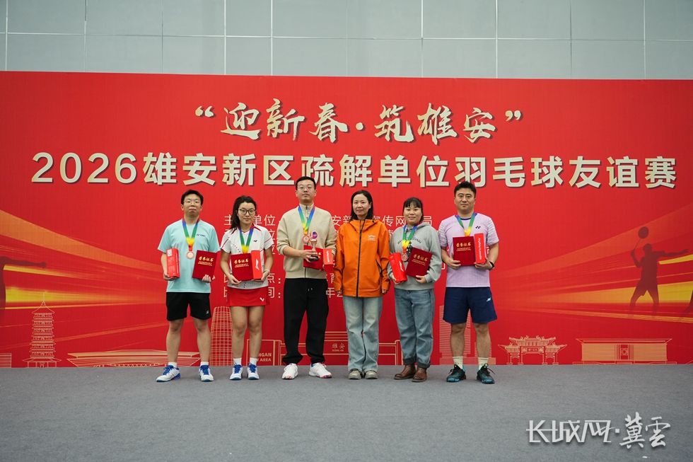 长城网·冀云客户端讯(边晨旭)2月8日,2026雄安新区“迎新春 筑雄安” 疏解单位羽毛球友谊赛在雄安体育中心圆满完赛。本次赛事由雄安新区宣传网信局主办,雄安体育中心运营管理有限公司承办,中国雄安集团公共服务管理有限公司、雄安文体产业发展有限公司协办。来自新区各疏解企事业单位的29支代表队、近200名运动员齐聚赛场,以球会友、切磋技艺、喜迎新春,生动展现了雄安新区干部职工团结拼搏、奋发向上的精神风貌。