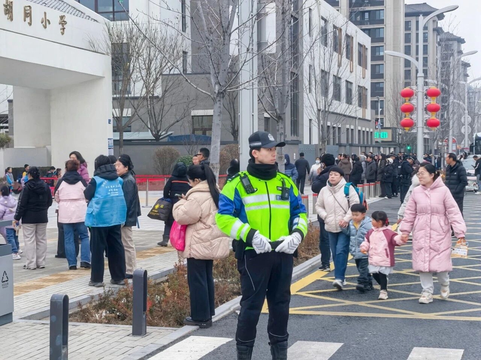 执勤警力重点疏导校园周边车流人流,严查违法停车、不按规定让行等交通违法行为,引导接送车辆即停即走、有序通行,全力保障学生平安入校、快乐离校,为孩子们的求学之路筑牢安全屏障。