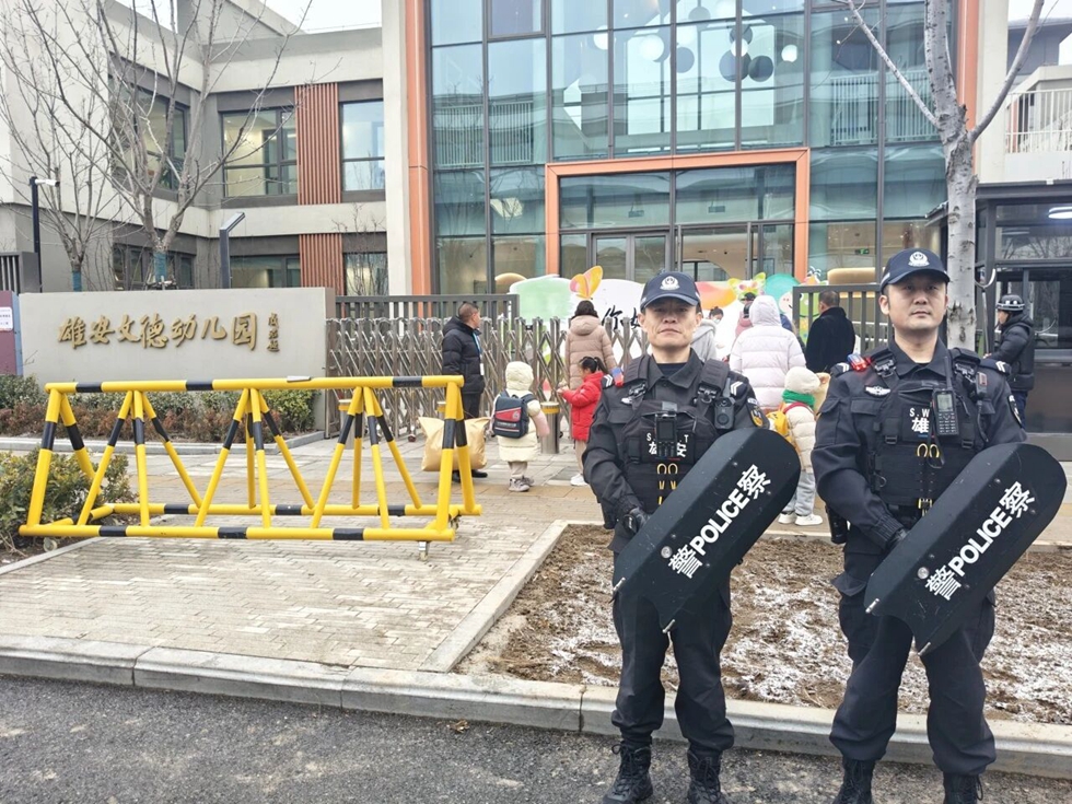 雄安公安精准布警,在辖区各中小学、幼儿园周边全面启动“护学岗”机制,在上下学高峰时段全时段在岗、全方位守护。
